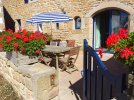 Extérieur : Profitez de moments de détente sur la terrasse privée avec salon de jardin et barbecue, le tout entouré d’un joli coin fleuri. Un véritable lieu de sérénité pour vos repas en plein air.